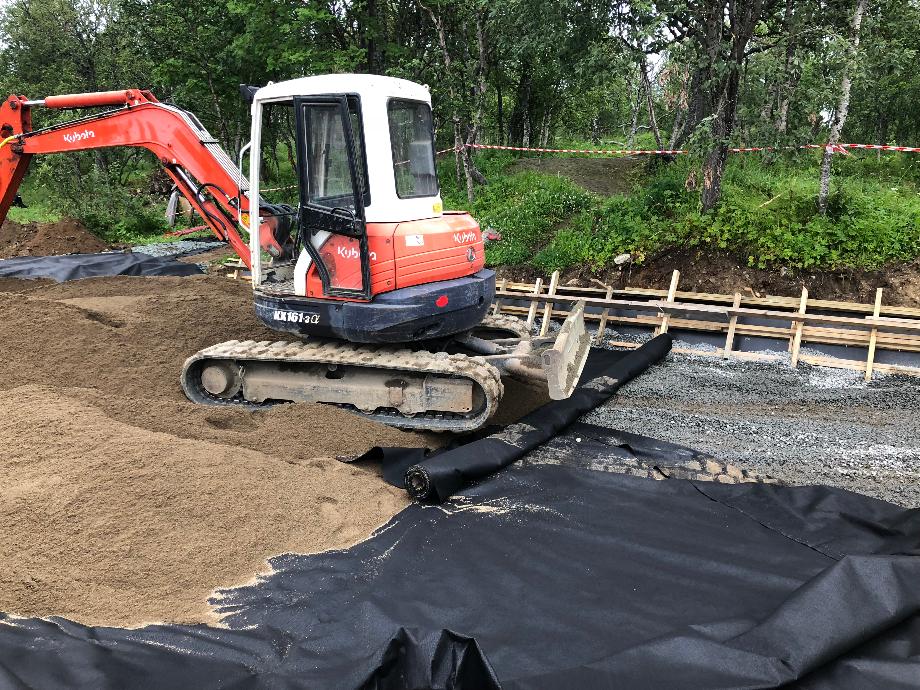 Utlegg av finsand til volleyball bane