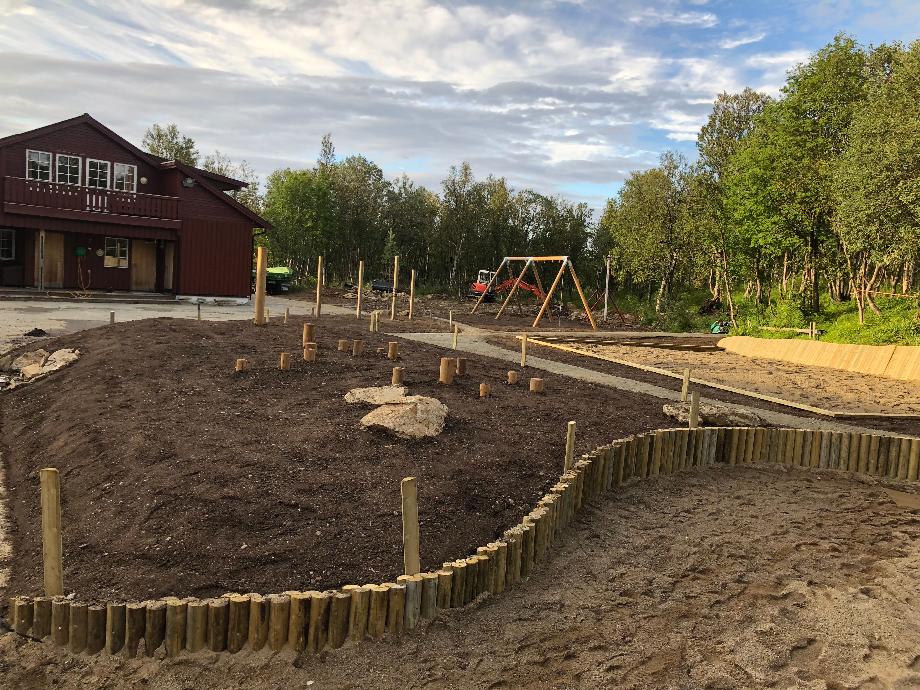 Organisk utformet skille mellom fallsand og terreng